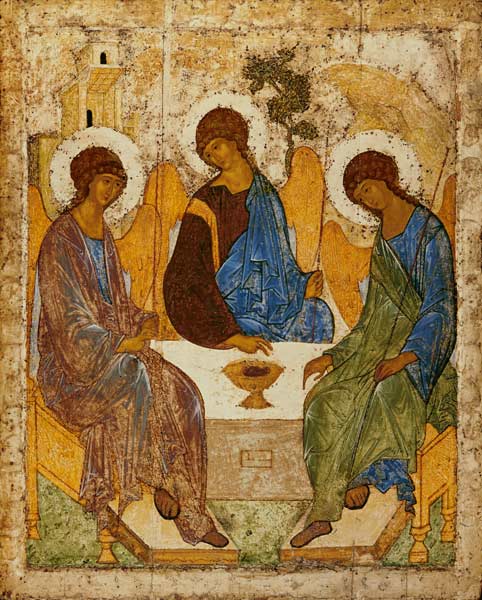 L’icône de Roublev est un des plus grands chefs d’œuvre de l’Art religieux chrétien. Tout ce qui concerne la foi chrétienne, l’Eucharistie, la Trinité et le Salut est représenté dans cette seule icône.