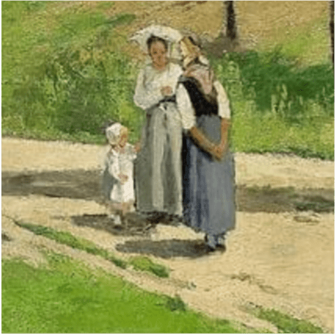 Si les émotions du peintre pointent les unes après les autres sur l’ensemble de la scène, aucune des touches n’accentue à ce point l’émerveillement devant l’innocence, devant cette frêle demoiselle dont on sent le besoin de protection, en devinant cette menotte tendue vers les jupes de sa mère.