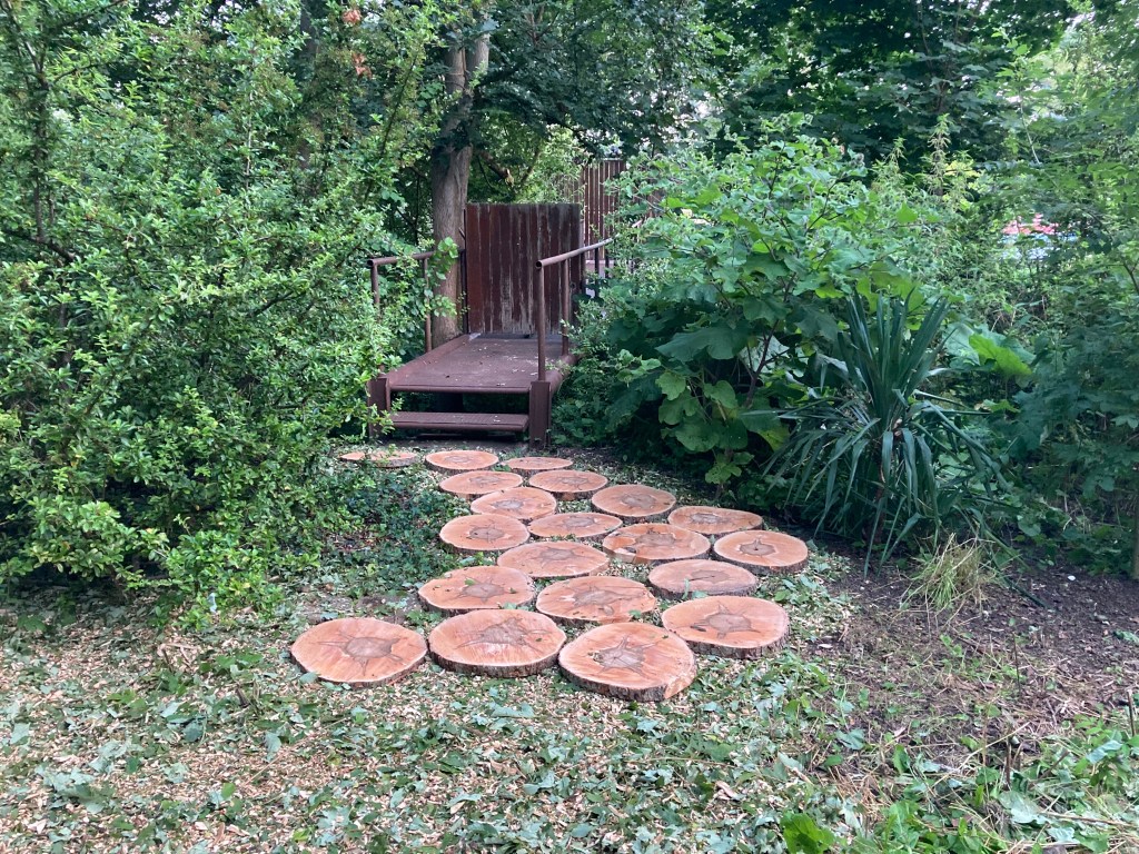 Vingt rondins de bois pour sortir ou entrer de chez soi, c’est multiplier d’autant les manières de sauter le pas d’un ici-je-vais-bien à un là-bas-j’irai-mieux, d’un ça-va-moyen à un ça-va-pas-du-tout.