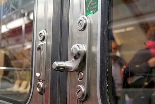 À l’avant-dernier coup de frein, les portes se déverrouillent et, comme vous avez déjà manipulé le loquet, les portes s’ouvrent comme par magie sur l’ultime glissade du train avant son arrêt définitif.