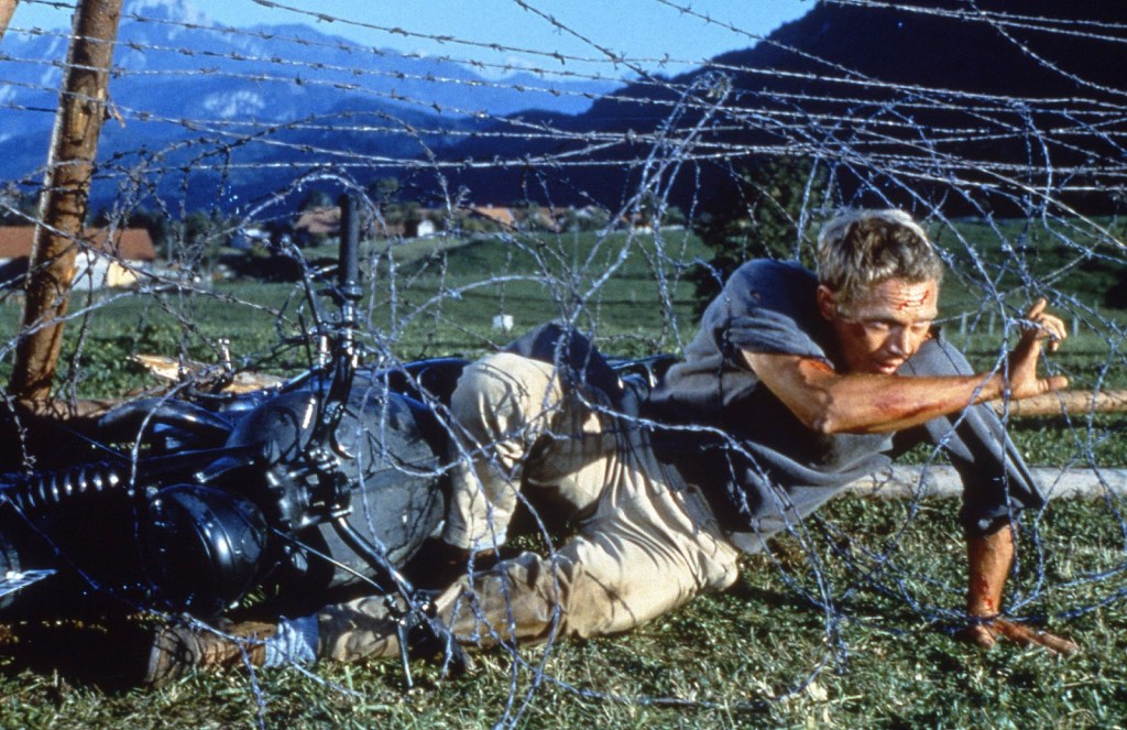 On le voit tendre un fil au travers de la route pour récupérer une moto et fuir encore plus vite vers la Suisse. Mais hélas, la course poursuite se prend les pieds dans les barbelés, au seuil du but et de la liberté.