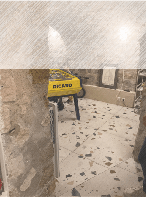 Bistrot du fin fond de Paris. Sous-sol en voûte de pierres apparentes. Carrelage moucheté, pas une toile d’araignée. On se serait attendu à trouver cela nettement plus au sud, dans un estaminet de village.