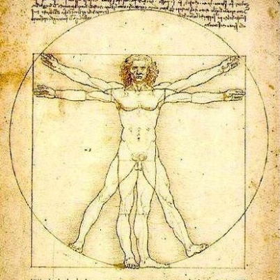 Le dessin de Léonard de Vinci représente l’Homme dans ses proportions parfaites, telles qu’elles ont été conçues par la Nature. Il s’agit surtout d’un idéal. La Nature donne naissance et laisse libre cours à ses parfaites imperfections. L’hôte du Clos Lucé montre ainsi la puissance de l’Homme sur le monde. Mais il en précise aussi les limites dans la symbolique cosmique du cercle et du carré. Le cercle représente la perfection, l’unicité centrale ; le carré, la condition terrestre de l’homme. L’architecte, Homme lui aussi, tente de réunir dans ses œuvres les trois clefs de voûte de l’esthétique : l’utilité, la beauté et la pérennité. Utilité : l’Homme est utile, parfait ou non. Beauté : elle se trouve au-delà des proportions physiques et c’est là un dialogue de sophistes. Pérennité : au sens de longévité, pas d’immortalité. L’Homme est utile. L’Homme est beau. Mais Il n’est pas immortel.