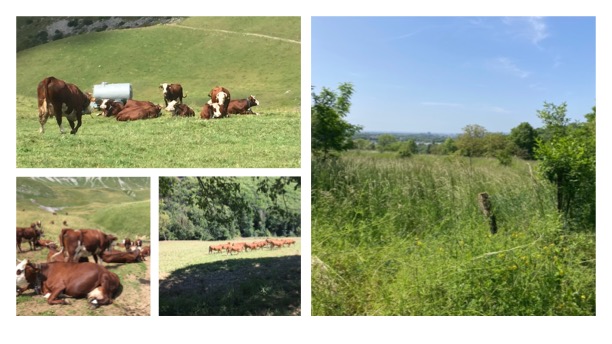 C’est le genre de réflexions auxquelles peut se livrer votre chroniqueuse pendant ses randonnées dans des paysages qui lui sont chers et dont elle constate chaque année le grignotage par l’extension des villes. Après un tel calcul, en arrivant sur une crête qui domine la ville artificielle de Pontoise, Cergy-Pontoise, Cergy-le-Haut, Cergy-Préfecture, … il faut se demander si le cheptel bovin français dans sa totalité arriverait par ses seuls pets à faire autant de dégâts que les pelleteuses qui défoncent leurs prés, artificialisent à grand renfort de béton, ZAC, bretelles autoroutières et autres cages à lapin construites à la hâte pour loger tous ces gens que la natalité française produit localement ou qui sont importés à grand renfort de bateaux gonflables du très lucratif trafic méditerranéen.