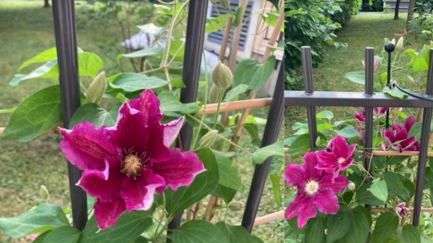 Elle était seule jusqu’à présent. Puis d’une, elle devint multiple. Les autres clématites, à l’abri dans leur bourgeon, attendaient leur tour ; que la météo soit un peu plus idéale ; que la première, tête de pont, assure que tout allait bien, les rassure. Peut-être que l’aînée, vieille de seulement quelques heures, sentant ses jours comptés, les a-t-elle enjointes à éclore ; il faut bien décider de vivre. Quand on pense qu’il y a peu, appelées herbe des gueux, elles servaient aux mendiants à frotter et à irriter leur peau pour se faire plaindre et accroître les gains de leur commerce. Tout leur mérite aujourd’hui, dès tôt le matin, est d’étirer leurs charmes et leur teint éclatant, de faire envie plutôt que pitié, de quêter les compliments les plus enthousiastes. Quant à les toucher, j’en crois les anciens usages : qui s’y frotte, se gratte. Hommage certes, mais des yeux seulement !