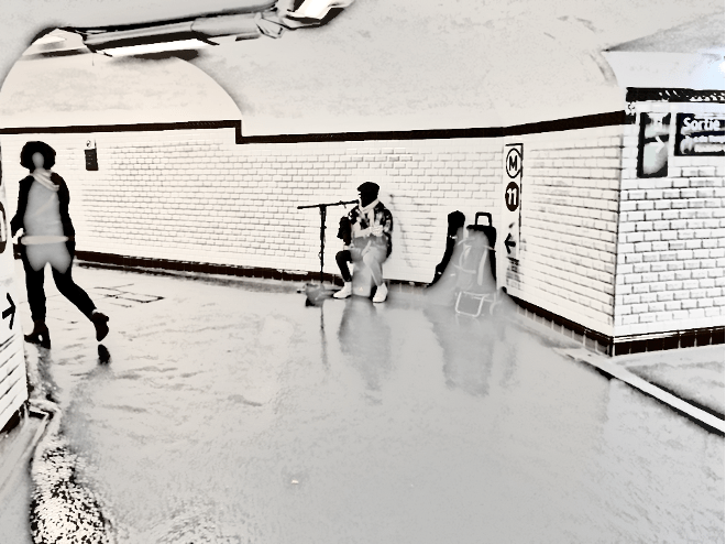En fait d’accompagnement, il s’agissait d’une guitare. En fait de voix, la ligne était bien plus grave. Mais les mirages raccordent à des souvenirs qu’on ne croyait plus avoir encore en réserve. Cela tient sans doute aux seules paroles de « Feel good » qui ont résonné, glissé sur le ciment ciré du métro pour venir vibrionner dans mes méninges et y susciter le fantôme chantant de l’artiste américaine. Nina Simone entonnait cette chanson a cappella, suivie par une entrée magistrale de cuivres qui portaient sa voix au paroxysme de la sensualité du jazz. C’est cela, cette sensualité vibrante, expressive, aux délicieux accents noirs, aux légers rehauts de gospel, retrouvée dans la voix d’un artiste de métro qui a produit son effet trompeur. Pour mon plus grand bonheur.