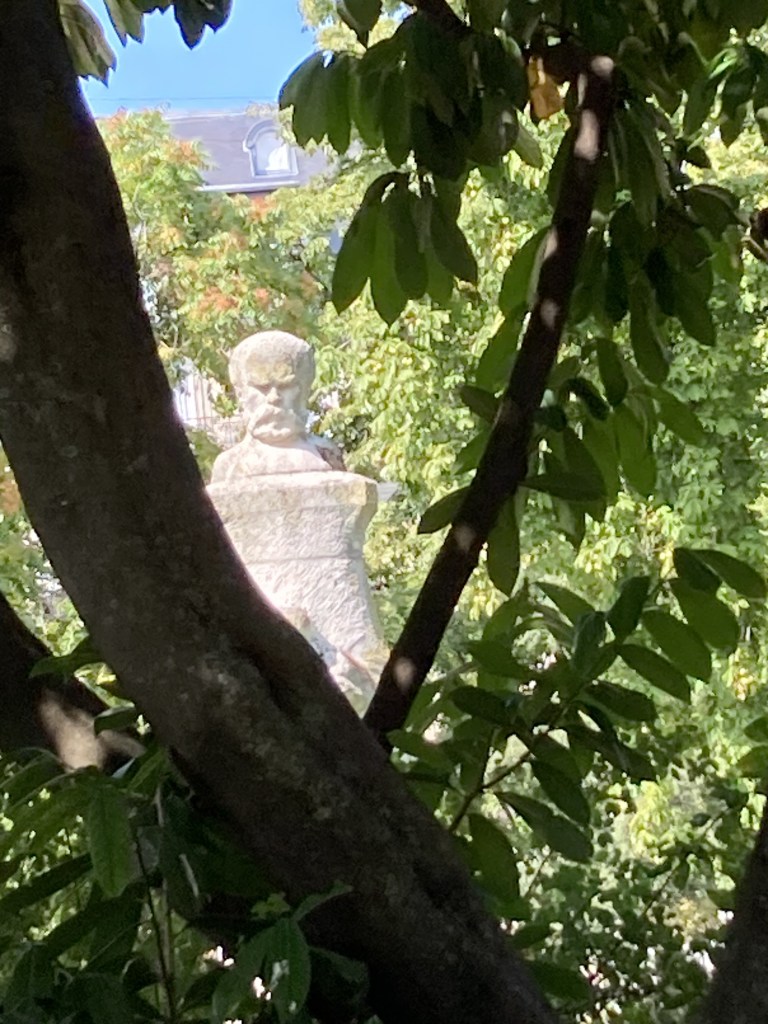 Jamais je n’avais vu une représentation aussi sévère de son visage. Aujourd’hui, j’ai déjeuné face à Paul Verlaine. Installée tranquillement, sandwich à la main, sur une des chaises inconfortables des Jardins du Luxembourg, son regard de marbre taillé, presque de reproche, semblait me fixer. J’ai cherché à comprendre ce malaise sans doute bien imaginaire. L’autre main, celle qui ne tenait pas le sandwich, soutenait un livre, Pensées pour moi-même de Marc Aurèle. La pensée en cours de lecture était la suivante : « si les artisans s’accommodent jusqu’à un certain point des profanes, ils n’en restent pas moins attachés aux principes de leur art et ne supportent pas de s’en écarter. » (Livre IV, 15) Et là, j’ai compris le reproche : aux pensées brutes de l’empereur romain, Paul Verlaine opposait son laborieux travail poétique. Alors vite, j’ai cherché des vers verlainiens appropriés, et au midi ensoleillé et à ce havre calme au cœur de la ville ! Et voilà ceux dont je me suis rappelée :