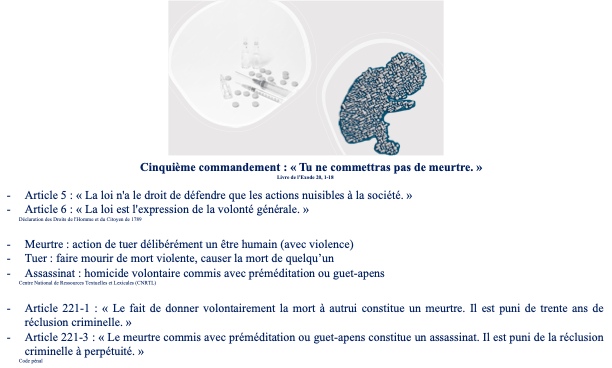 Ce n’est rien de moins qu’une involution, qu’une perte de contact avec ce qui fonde cette condition humaine, cette humanité ; que derrière les mots, il y a des vies. L’avortement, l’injection létale, avant d’être des mots pour des actes techniques, sont des transgressions d’un interdit immémorial : celui de tuer.